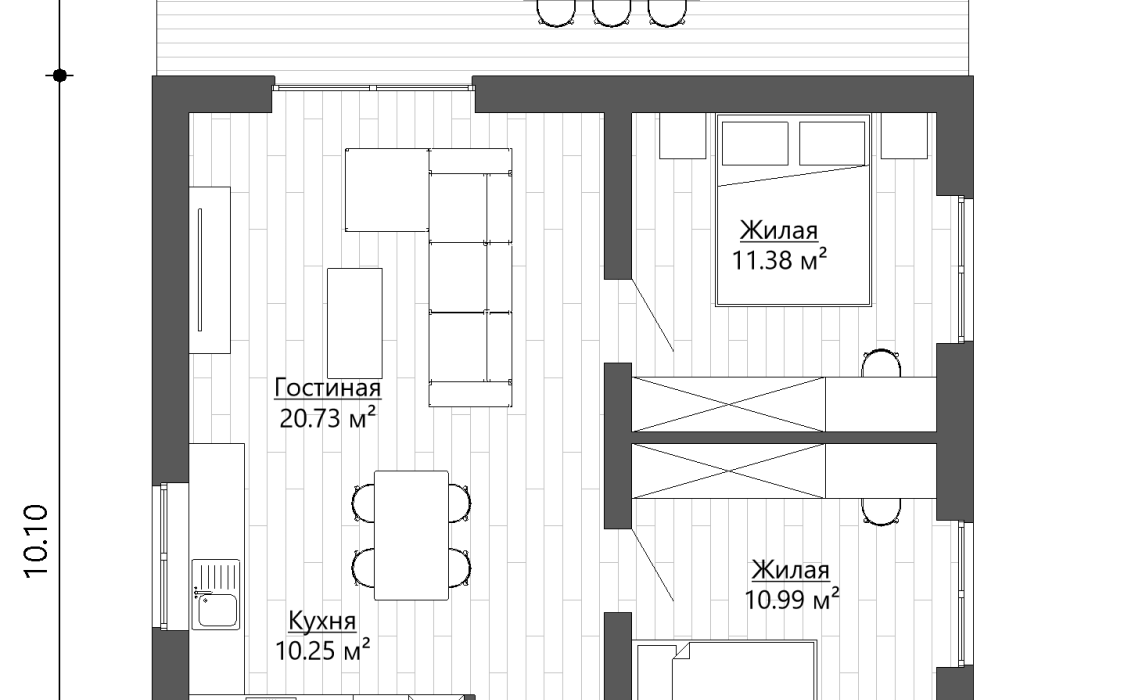 - Гостиная с открытой кухней