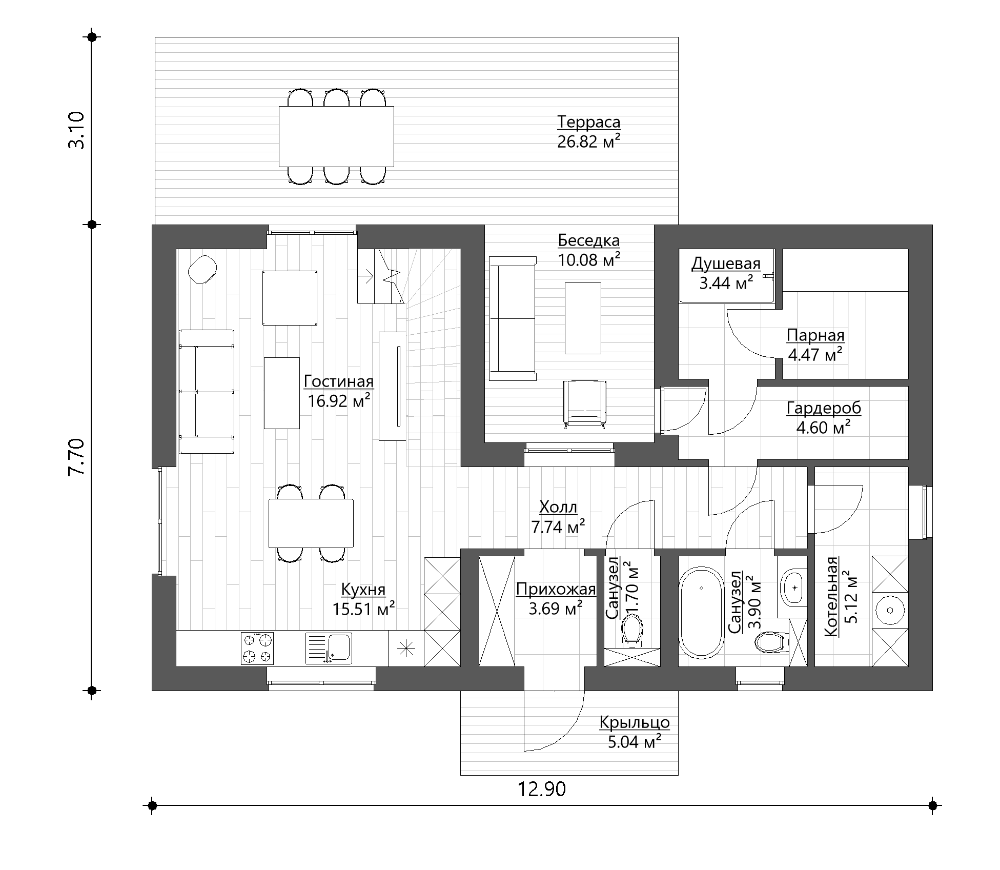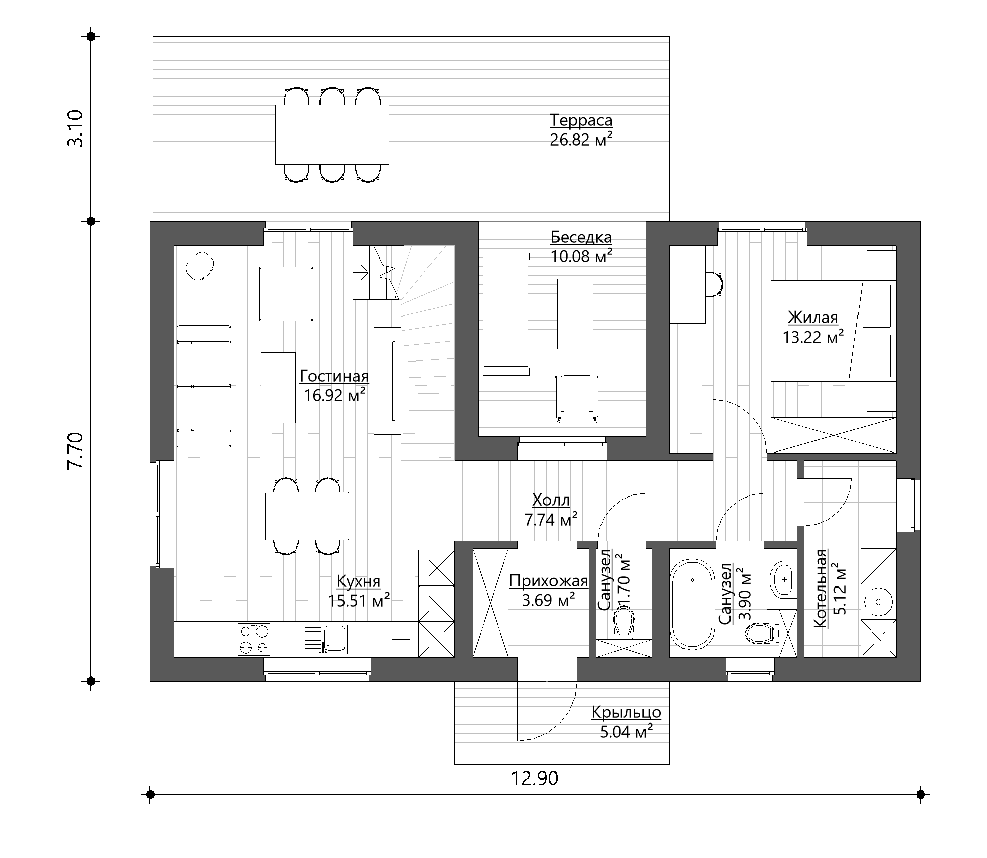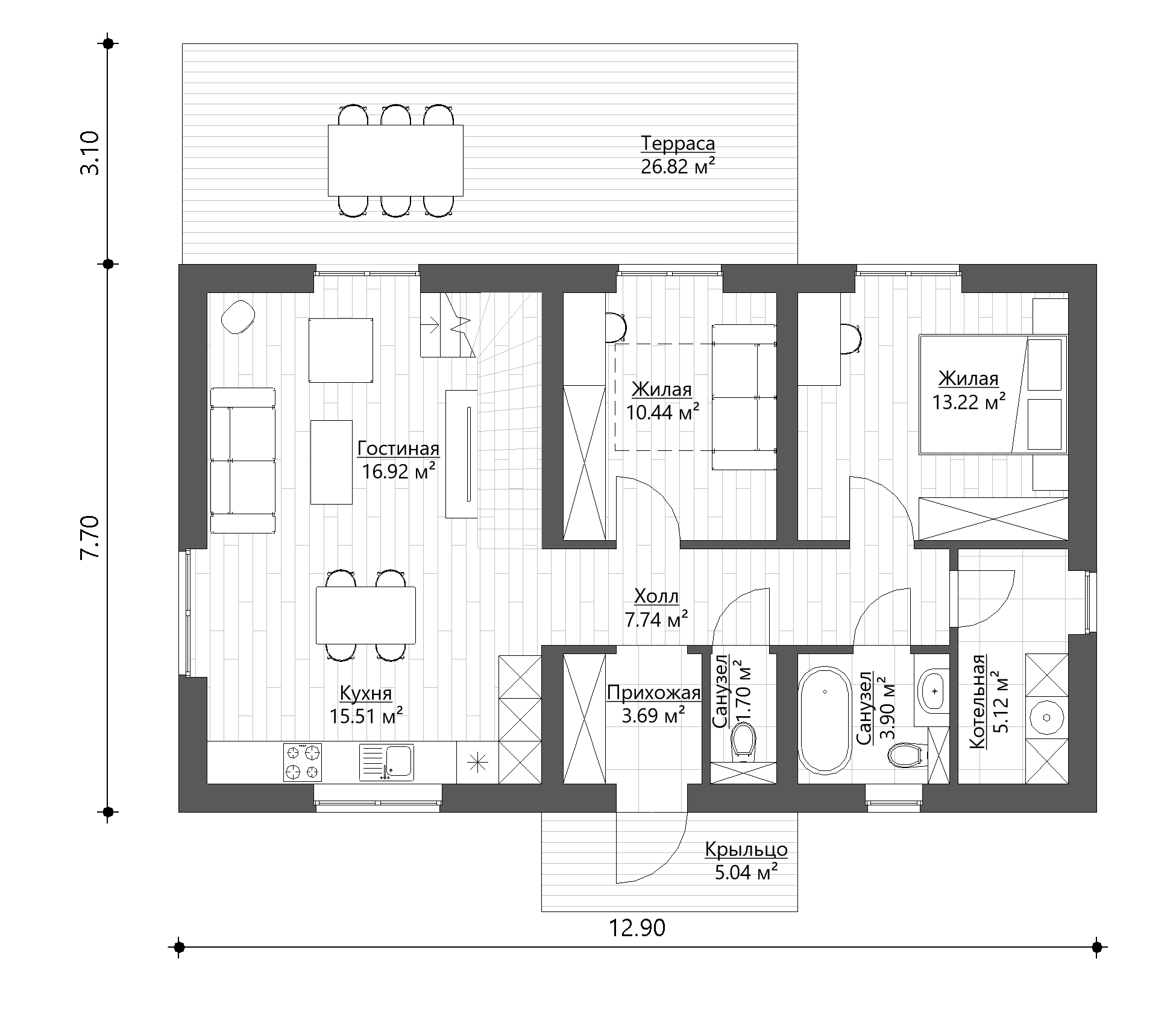 Мы применяем только безопасные решения проектируя все конструкции, особенное внимание к фундаменту, кровле, электрике, системе отопления и водоснабжения.
